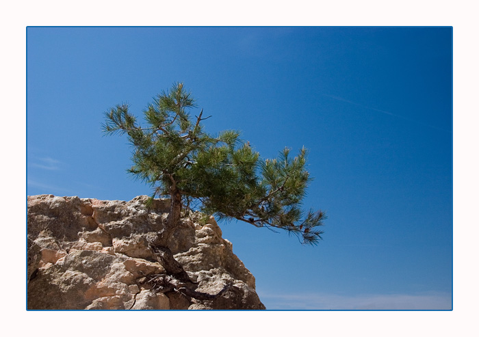 eine kleine Pinie hat sich auf einem Fels angesiedelt