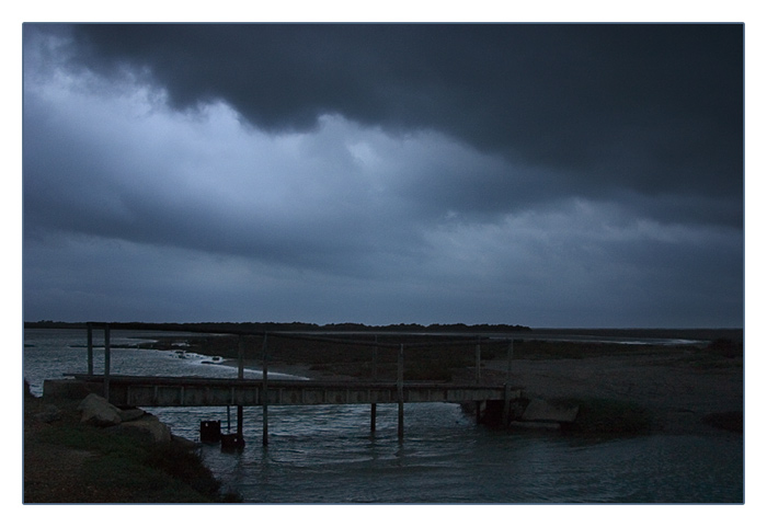 früh am Morgen bei schwarzen Wolken und starkem Wind bei Stes Maries de la Mer