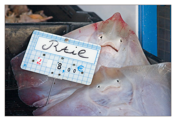 Rochen oder Rajiformes auf dem Ladentisch am Hafen