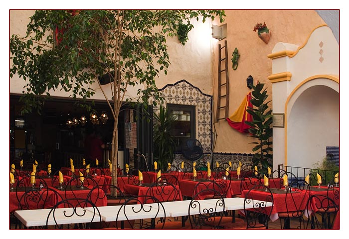 ein Lokal hat für den Abendtisch gedeckt (Saintes Maries de la Mer)