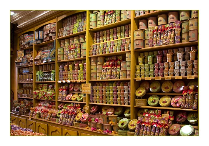 Süsswarenladen anno dazumal in Aigues Mortes (Canal du Rhône à Sète, Camargue)