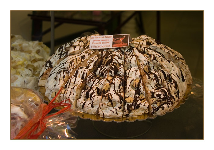 Torte mit Nougat in einer Schaufensterauslage
