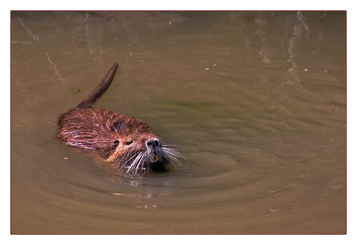 Biberratte, auch Bisam genannt schwimmend in einem Kanal der Camargue