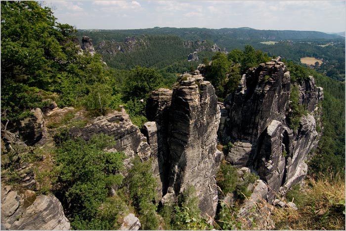 Blick von der Bastei auf die Sandsteinfelsen