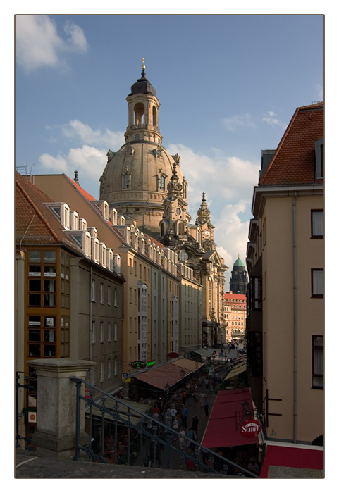 Blick von der Brühlschen Terasse auf die Münzgasse mit Frauenkirche