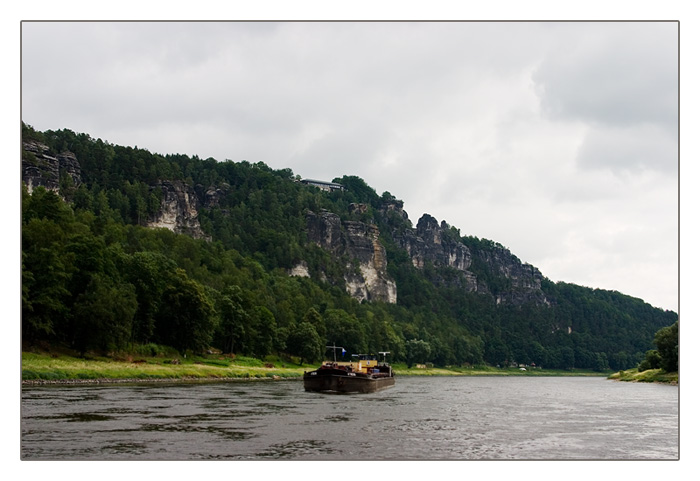 Mit dem Raddampfer auf der Elbe mit Blick auf die Bastei