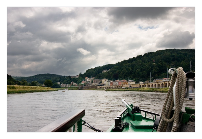 Mit dem Raddampfer auf der Elbe mit Blick auf Königstein