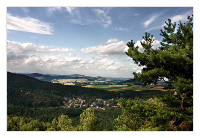 Blick runter auf Jonsdorfund ins Zittauer Land