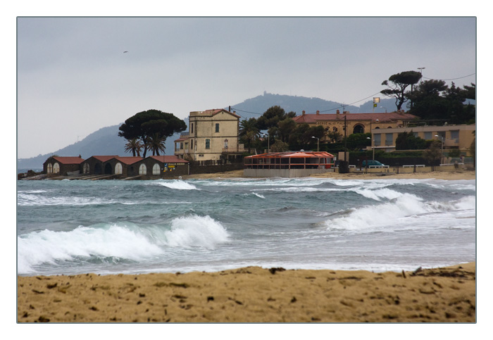 schlechtes Wetter am Strand von Saint Claire bei Regen und Sturm