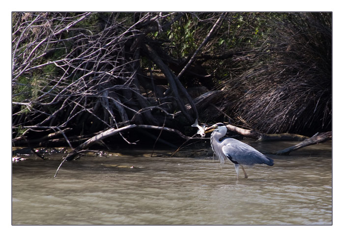 Reiher mit Beute in der kleinen Rhone