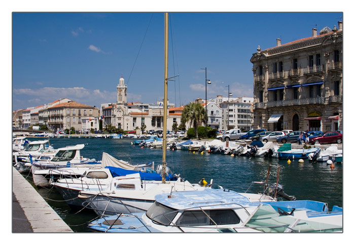 Blick auf das Verwaltungsgebäude am Kanal Louis-Pasteur in Sete, Verwaltungsgebäude, Languedoc-Roussillon