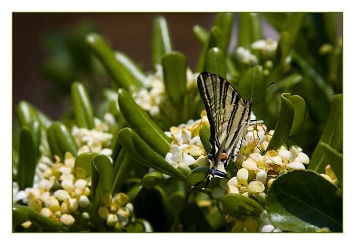 Segelfalter auf Pechsame-Blüten (Pittosporum tobira), Cap de Agde, Südfrankreich