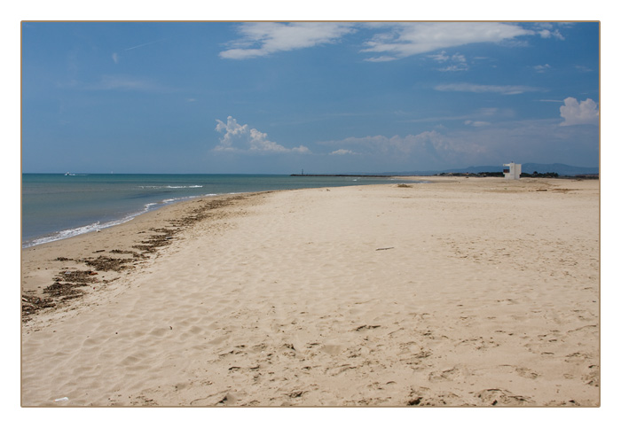 Blick vom Strand Richtung Gruissan, Narbonne- Plage