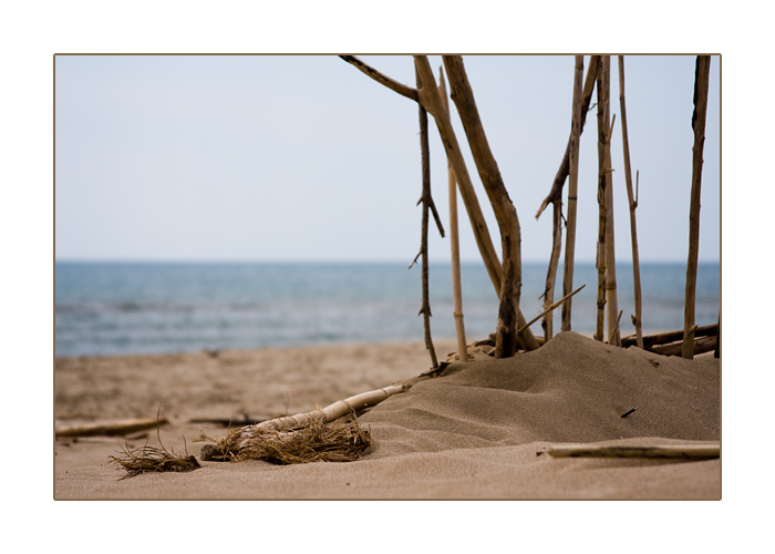 Holzgebilde am Strand von Narbonne- Plage