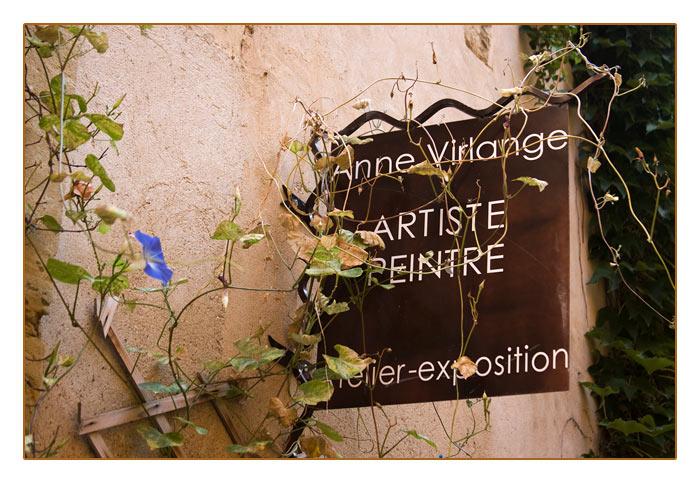 Kunst-Galerieschild in Gordes, Vaucluse, Provence-Alpes-Côte d’Azur