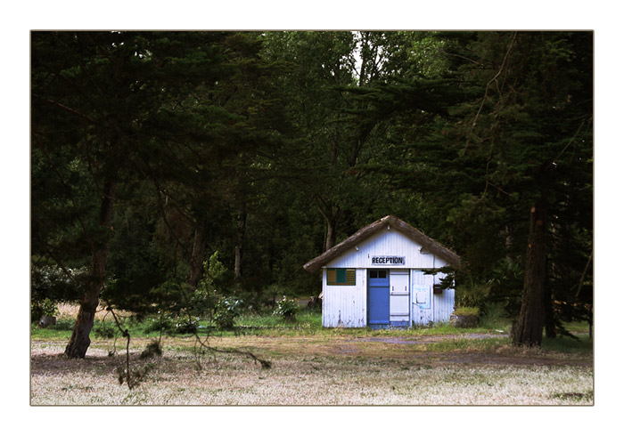Rezeption eines ehemaligen Campingplatzes. Le Collet bei Bourgneuf-en-Retz