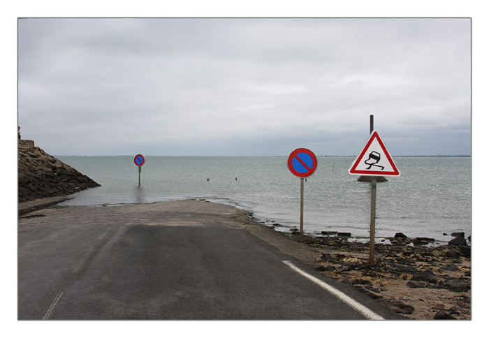 Passage du Gois von der Insel Noirmoutier nach Beauvoir-sur-Merzur auf dem Festland bei Flut