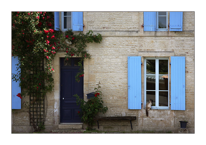 idyllisches Haus mit Katze auf dem Sims im Marais Poitevin à Coulon