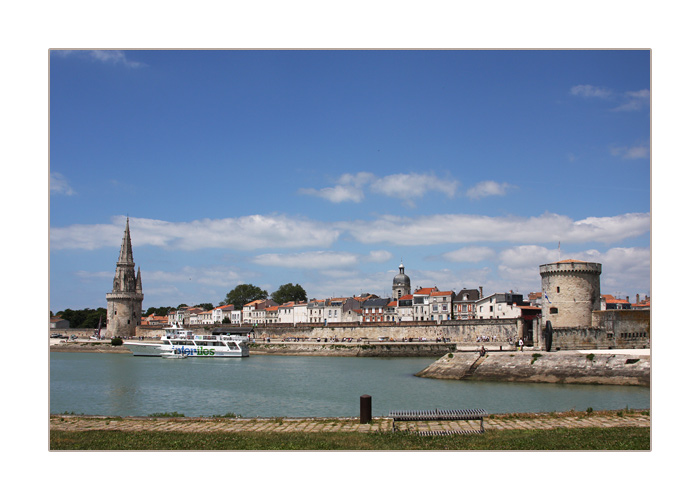 Hafeneinfahrt von la Rochelle mit den Türmen "Tour de la Lanterne" (li) und "Tour de la Caine" (re)