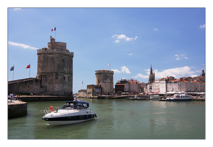 Hafeneinfahrt von la Rochelle mit den Türmen "Tour St.-Nicolas" (li) und "Tour de la Caine" (re)