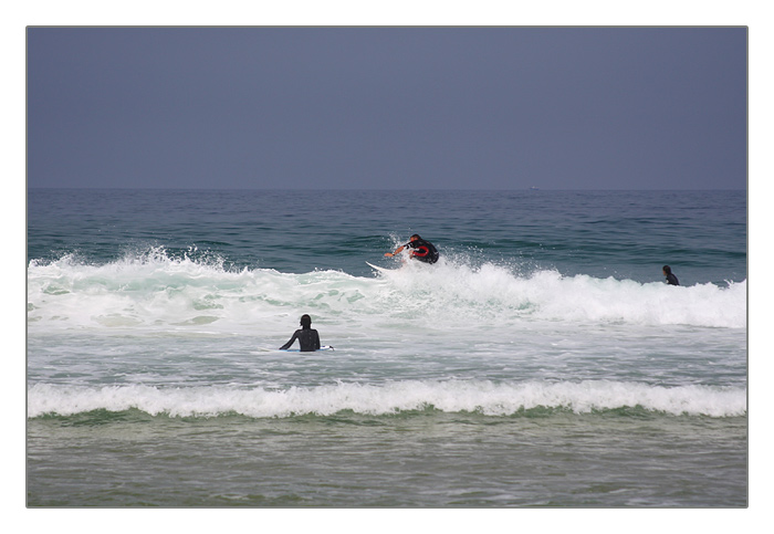 Strand mit Wellenreiter, Biscarosse-Plage