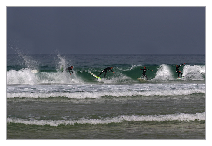 Strand mit Wellenreiter, Biscarosse-Plage (Bildmontage)