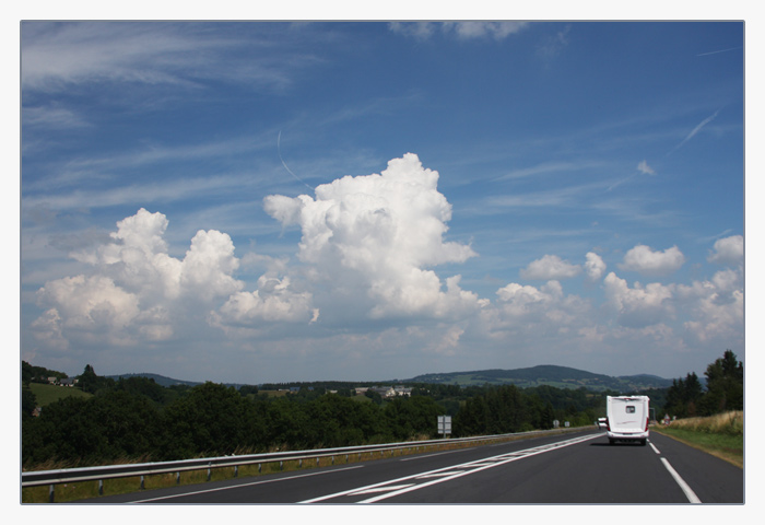 toller Wolkenhimmel irgendwo auf der Strecke (während der Fahrt fotografiert)
