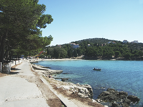 kein Mensch würde je glauben, dass man auf diesem schmalen Zufahrtsweg mit einem Wohnmobil auf unseren sehr geschätzten Campingpaltz fahren könnte. Im Hochsommer wuselt es auf diesem Weg von Kindern und Erwachsene. im Hintergrund ist eine kleine, künstlich angelegte Badebucht, die überwiegend von Familien mit Kindern benützt wird.