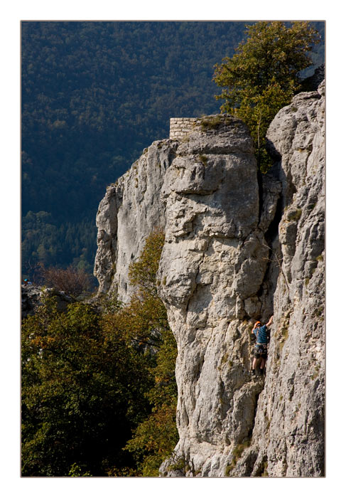 Kletterfelsen an der Ruine Reussenstein auf der schwäbischen Alb