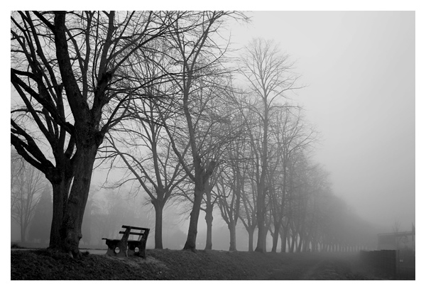 Allee im Nebel (Oberkirch), schwarz-weiss