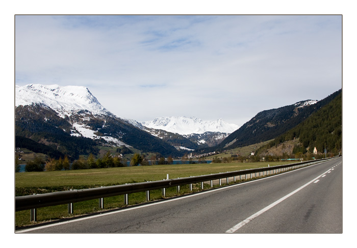Heimreise über die nun schneebedeckten Alpengipfel am Reschensee
