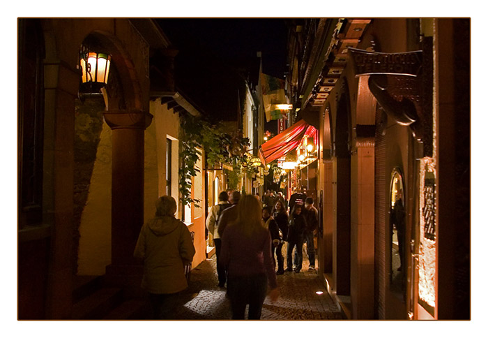 nachts unterwegs in Rüdesheim in der berühmten Drosselgasse