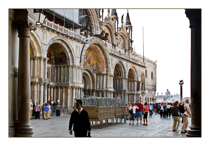 überall um Venedig und am Canal Grande sieht man diese gestapelten Laufstege, die bei Überschwemmungen aufgestellt werden