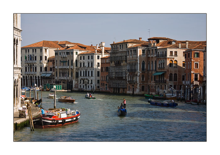 morgendlicher Blick von der Rialtobrücke mit regem Schiffsverkehr