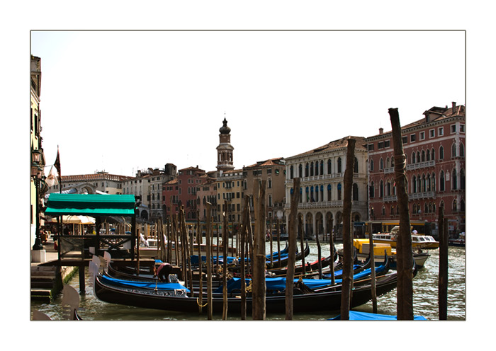 Am Canal Grande in der Nähe der Rialtobrücke. Gondeln noch ausser Betrieb.